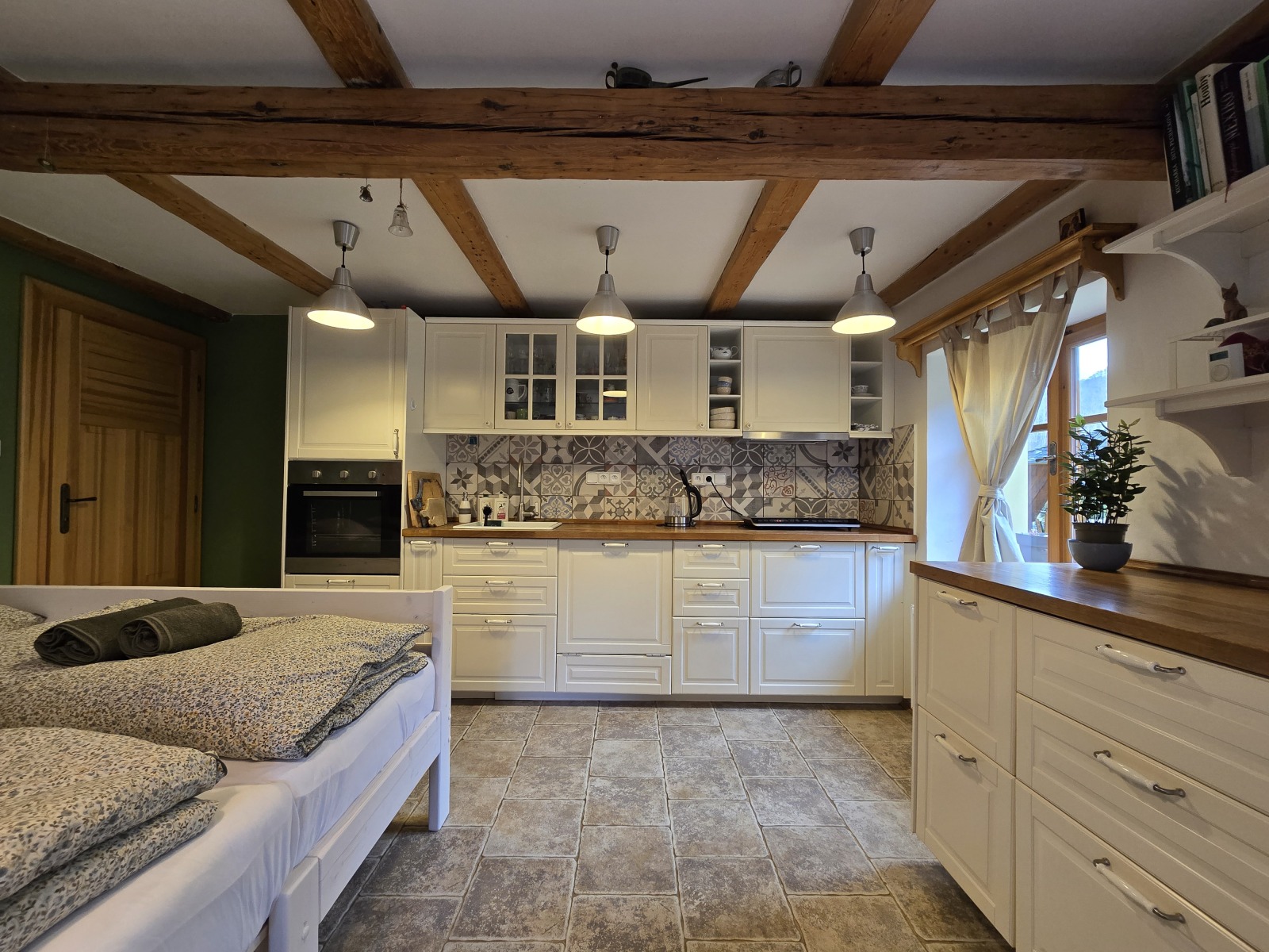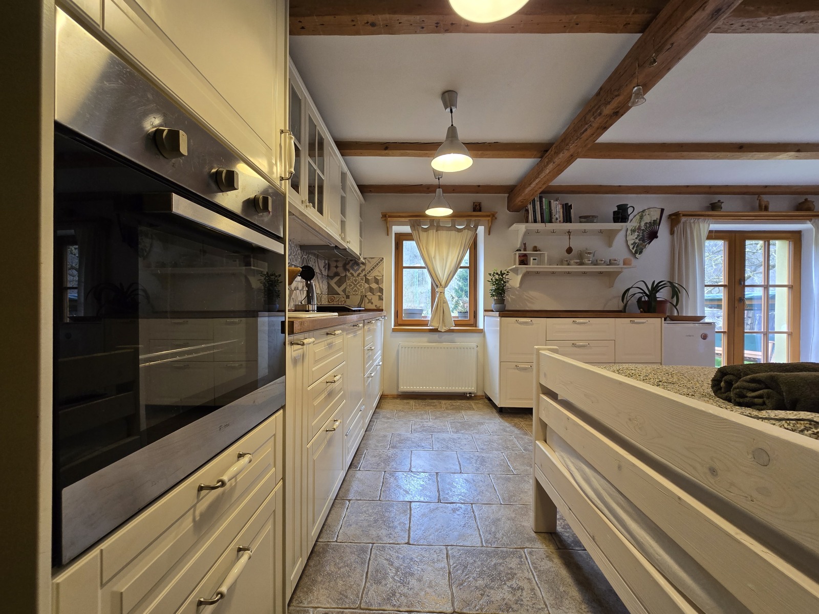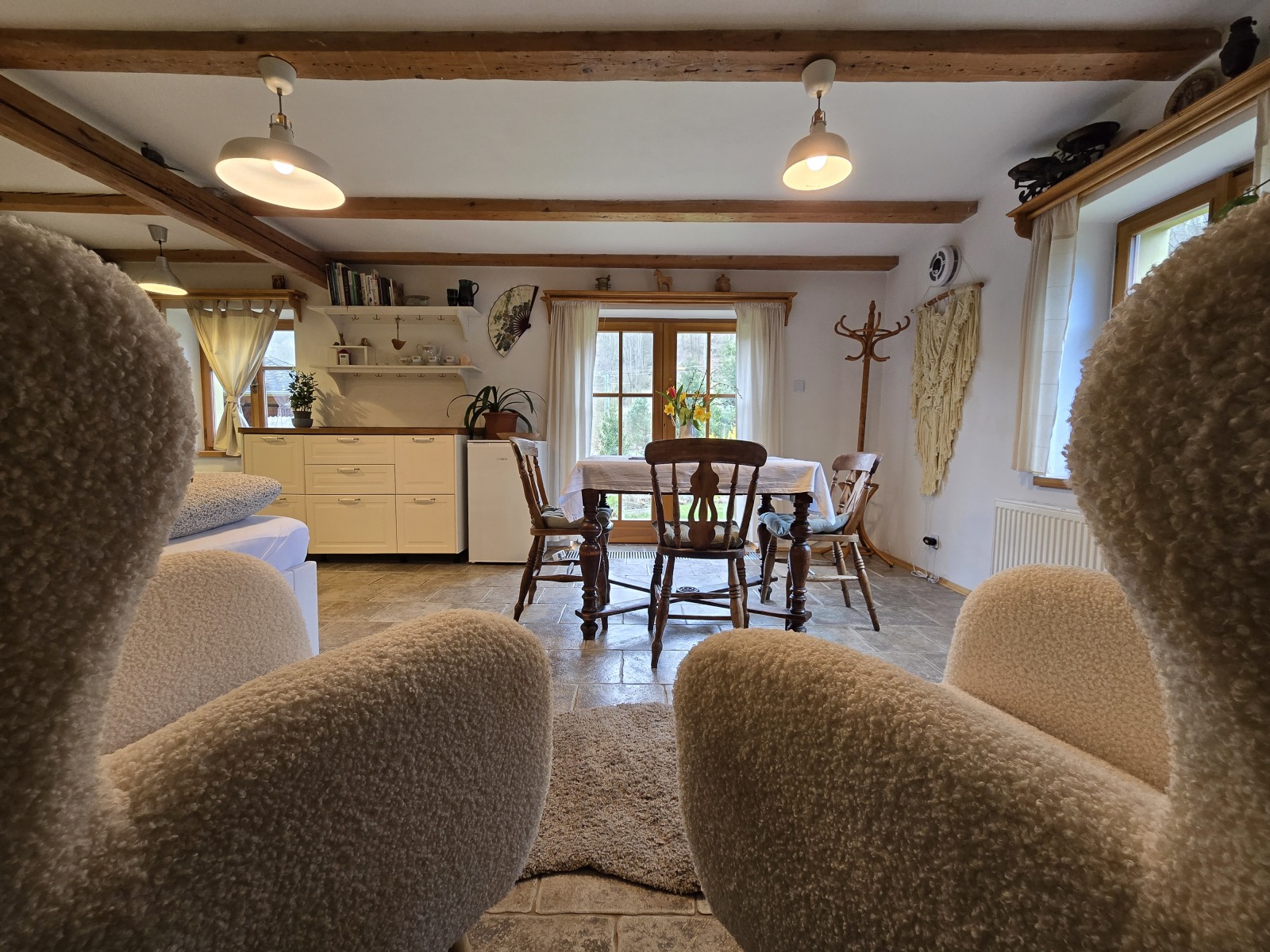 V ceně: Ložní prádlo, dva ručníky na osobu, jar, mýdlo, toaletní papír, houbičky na nádobí, úklidové prostředky, svíčky, a v sezoně bylinky z naší zahrádky.